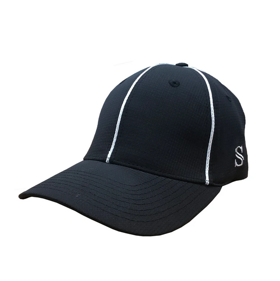 HT110 - Smitty - Performance Flex Fit Hat - Black with White Piping